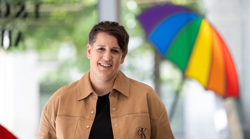I've always been quite a vocal out lesbian in the workplace, not really through choice, more just that's kind of how I've lived my life. I was the first person that knowingly came out at school. I went to an all-girls school in a conservative part of the country. It was very non-LGBTQ+ friendly. When I was at school, it was still kind of operating under Section 28. We had no out teachers, and no inclusive sex education, so, against that backdrop, I decided I was bored of hiding who I was. So, I came out at school. I was quite young. I think I was 14…I was in year nine, and I started an LGBT group. And then ever since then, I've just kind of just always been visible.